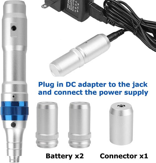 With two interchangeable batteries, the Dr. Pen Ultima A6 can be used plugged in or cordlessly.